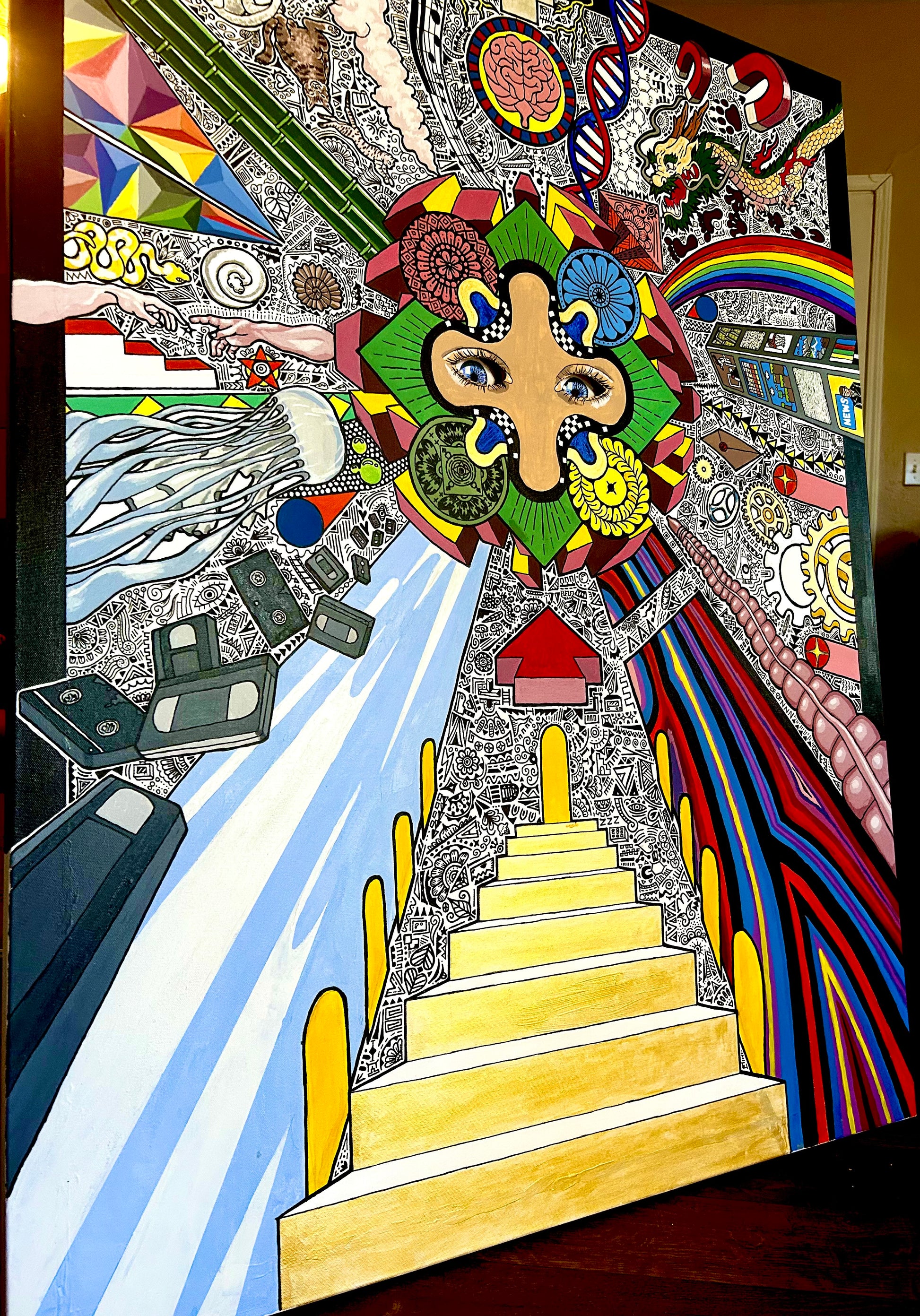 Dive into the mind-bending world of "The Bizarre Truth of Life," a unique 36 x 48 inch canvas that challenges your perception of existence. This original artwork sparks curiosity and playful reflection, inviting you to explore the strange and wonderful mysteries that life presents. Perfect for adding a touch of existential intrigue to any space, it transforms walls into a playground for thought and imagination.